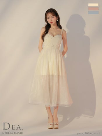 Lあり!オーガンジーが高級感たっぷり★ 【DEA.by ROBE de FLEURS/ディア】キャミソール ベルトデザイン ビジュー オーガンジー レース エレガント オープンバスト Aラインロングドレス(DE3587)