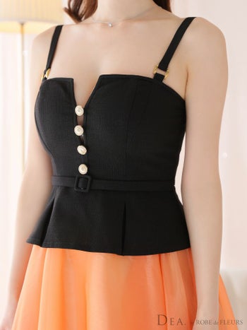 3. 【DEA.by ROBE de FLEURS/ディア】サマーツイード ペプラム オーガンジー バストボタンビジュー キャミソール ワンピース フレアロングドレス(DE3505)