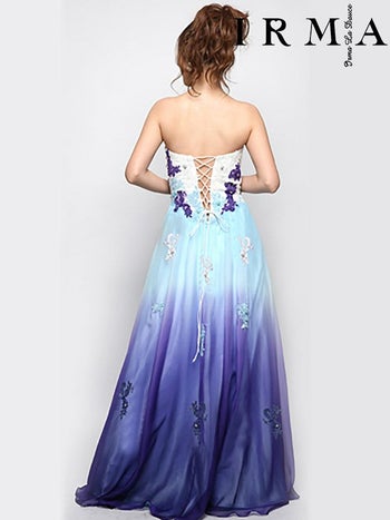 4. 【IRMA/イルマ】刺繍デザイングラデーション フレアロングドレス[ブルー][益田杏奈/高級キャバドレス着用]