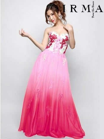 3. 【IRMA/イルマ】刺繍デザイングラデーション フレアロングドレス[ピンク][益田杏奈/高級キャバドレス着用]