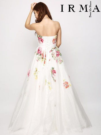 気品に満ちた女性へ導くキャバドレス♪ 【IRMA/イルマ】フェミニン フラワープリントローズベア プリンセス フレアロングドレス[ホワイト]