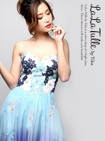 気品に満ちた女性へ導くキャバドレス♪ 【IRMA/イルマ】刺繍デザイングラデーション フレアロングドレス[ブルー]