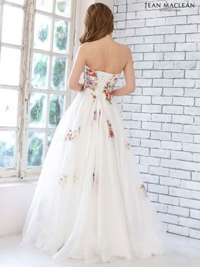3. 【JEANMACLEAN/ジャンマクレーン】フラワー花柄 オーガンジーチュール ビジュー プリンセス ベアトップ フレアロングドレス(11979)