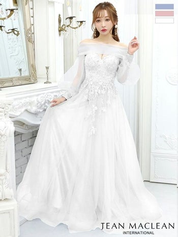 5. 【JEANMACLEAN/ジャンマクレーン】バースデー プリンセス ワンカラー 2wayチュール袖あり立体 フラワー刺繍ネットレース スピンドル オフショルダー オフショルダー ベアトップ フレアロングドレス(31285)