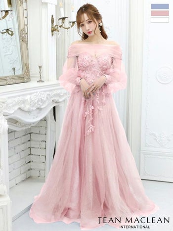 3. 【JEANMACLEAN/ジャンマクレーン】チュール袖あり 立体フラワー刺繍ネットレース スピンドル バースデー プリンセス ワンカラー 2wayオフショルダー オフショルダー ベアトップ フレアロングドレス(31285)