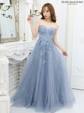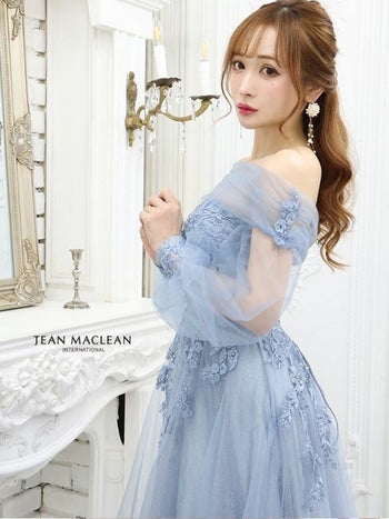 5. 【JEANMACLEAN/ジャンマクレーン】チュール袖あり 立体フラワー刺繍ネットレース スピンドル バースデー プリンセス ワンカラー 2wayオフショルダー オフショルダー ベアトップ フレアロングドレス(31285)