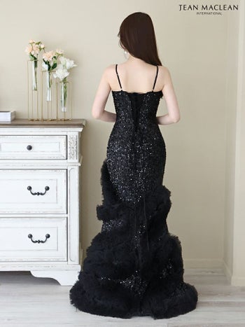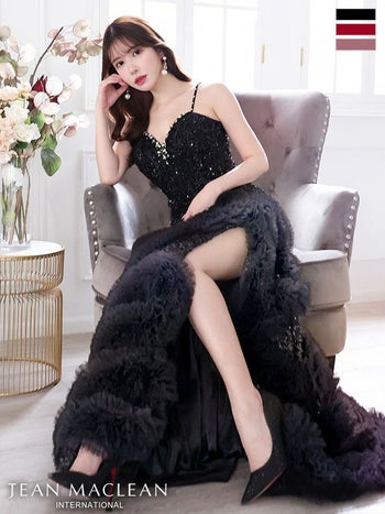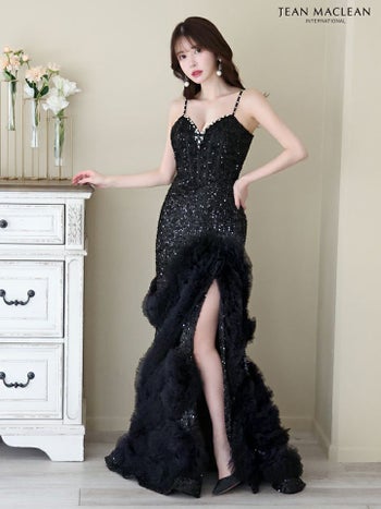 Lあり!高級感あふれるデザイン♡ 【JEANMACLEAN/ジャンマクレーン】キャミソール ビジュー スパンコール フリル セクシー スリット Aラインロングドレス(41670)