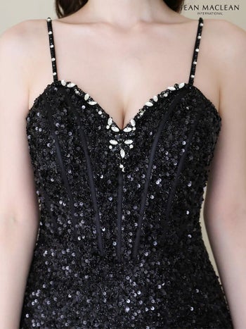 3. 【JEANMACLEAN/ジャンマクレーン】キャミソール ビジュー スパンコール フリル セクシー スリット Aラインロングドレス(41670)