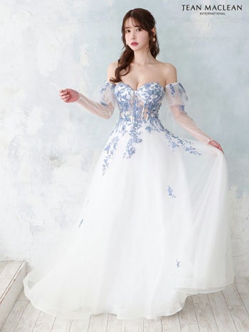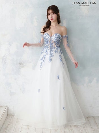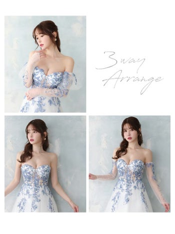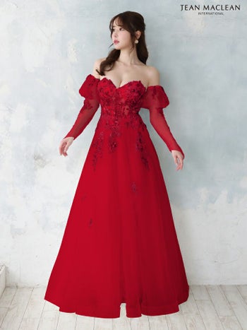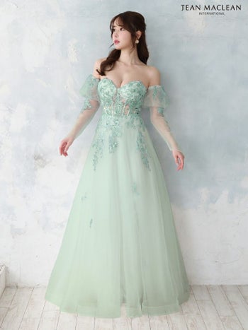 Lあり!嬉しい3way仕様で印象チェンジ♡ 【JEANMACLEAN/ジャンマクレーン】3way オフショルダー シアー 長袖 フラワー Aラインロングドレス(41672)