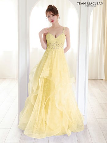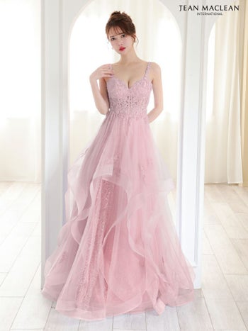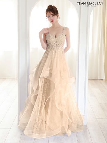 ラメチュールが可愛い♪ 【JEANMACLEAN/ジャンマクレーン】エレガント オープンバスト キャミソール 花柄刺繍 レース ラメチュール Aラインロングドレス (51785)