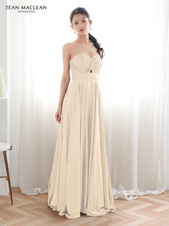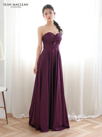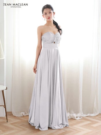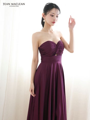 4. 【JEANMACLEAN/ジャンマクレーン】ベアトップ サテン バストツイスト ウエストカット ハイウエスト切り替え ワンカラー Aラインロングドレス(51929)