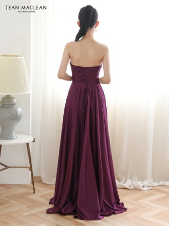 3. 【JEANMACLEAN/ジャンマクレーン】ベアトップ サテン バストツイスト ウエストカット ハイウエスト切り替え ワンカラー Aラインロングドレス(51929)