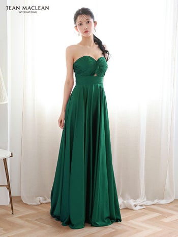 Lあり!大人の色気が溢れ出す♪ 【JEANMACLEAN/ジャンマクレーン】ベアトップ サテン バストツイスト ウエストカット ハイウエスト切り替え ワンカラー Aラインロングドレス(51929)