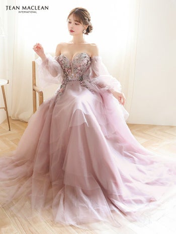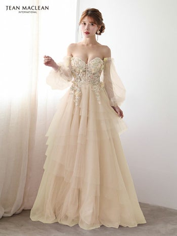 4. 【JEANMACLEAN/ジャンマクレーン】フラワーレース シアースリーブ フレア バックスピンドル バースデー オフショルダー Aラインロングドレス(51933)