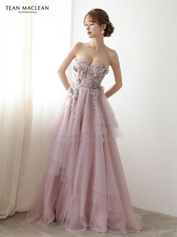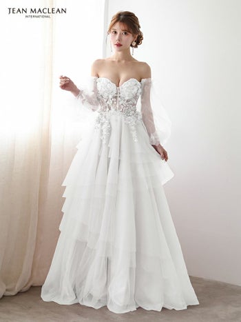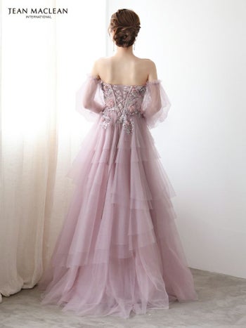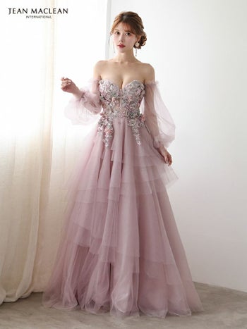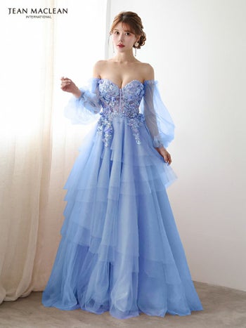 3. 【JEANMACLEAN/ジャンマクレーン】フラワーレース シアースリーブ フレア バックスピンドル バースデー オフショルダー Aラインロングドレス(51933)