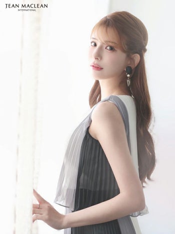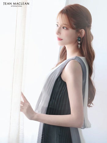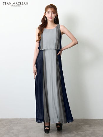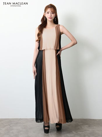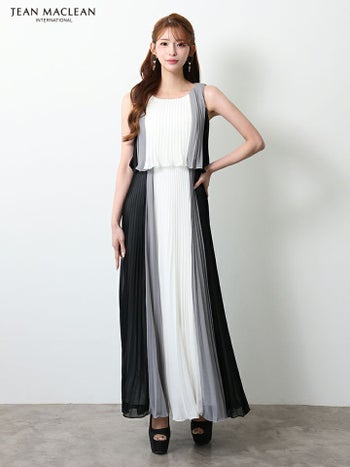 3. 【JEANMACLEAN/ジャンマクレーン】シフォン ノースリーブ プリーツ ストライプ シンプル Aラインロングドレス(51950)