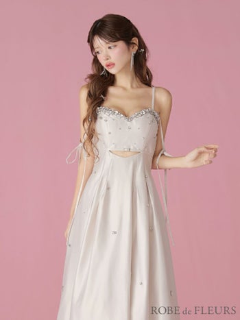 4. 【ROBEdeFLEURS/ローブドフルール】セクシー オープンバスト キャミソール ウエストカット ポケット サテン ビジュー 2way Aラインロングドレス (fm4500)