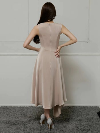 3. 【Veautt/ヴュート】ノースリーブ バストドレープ エレガント アシンメトリー ワンカラー シンプル Aラインロングドレス(VT022526)