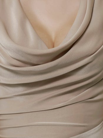 3. 【Veautt/ヴュート】アシンメトリー バストドレープ ノースリーブ エレガント ワンカラー シンプル Aラインロングドレス(VT022526)