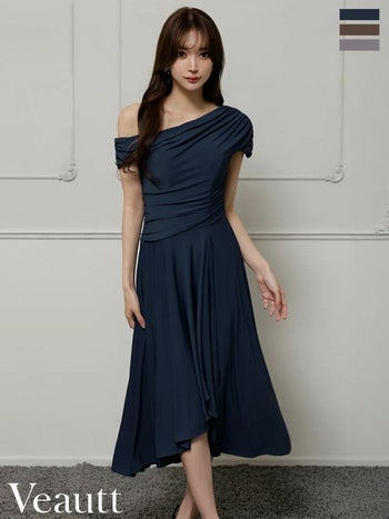 XSあり!動くたびにエレガントな印象に♪ 【Veautt/ヴュート】ワンショルダー エレガント アシンメトリー ドレープ Aラインロングドレス(VT022527)