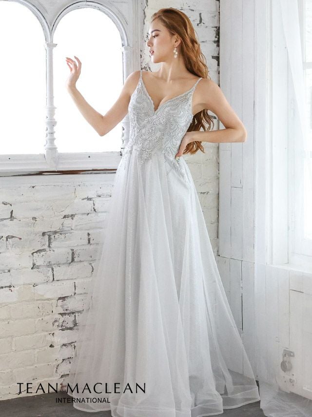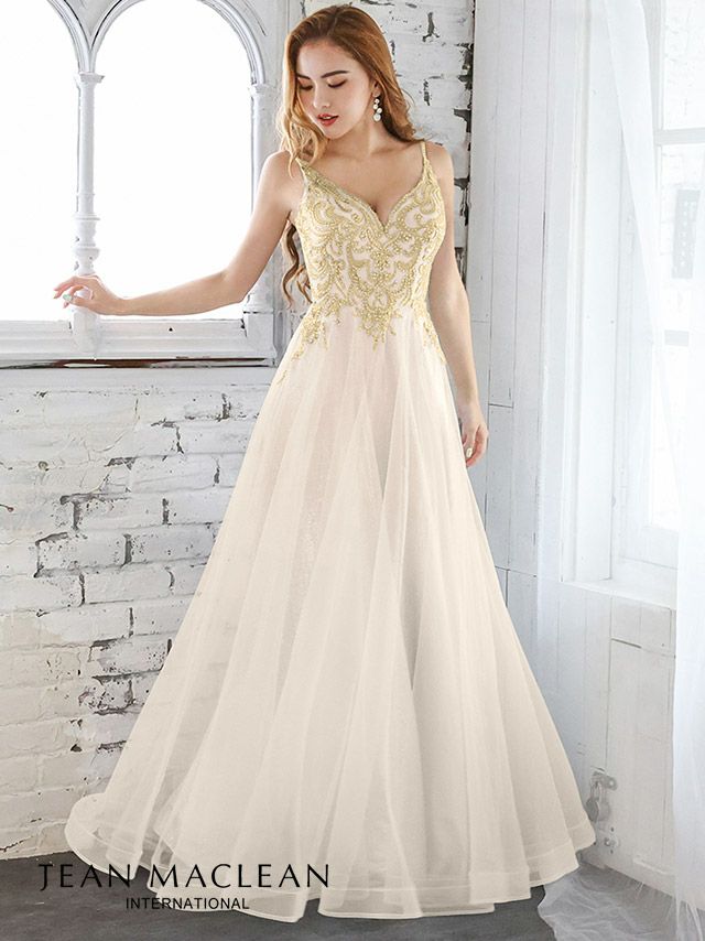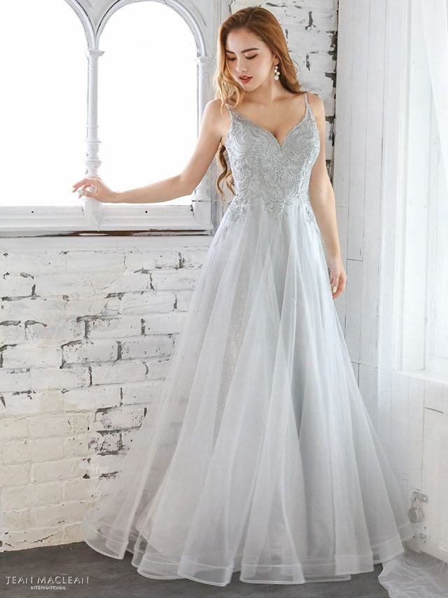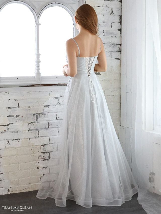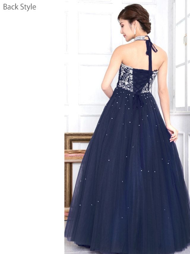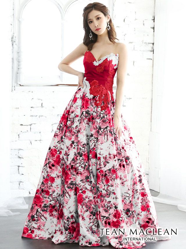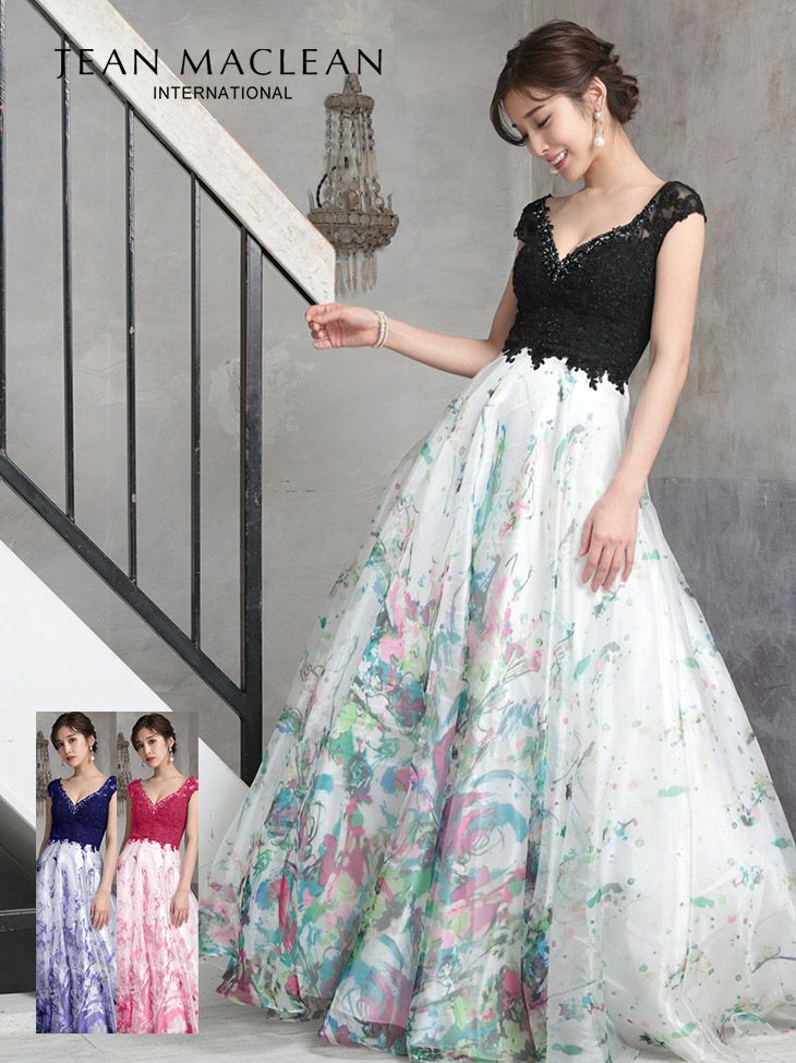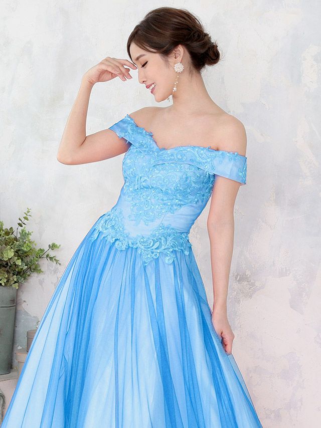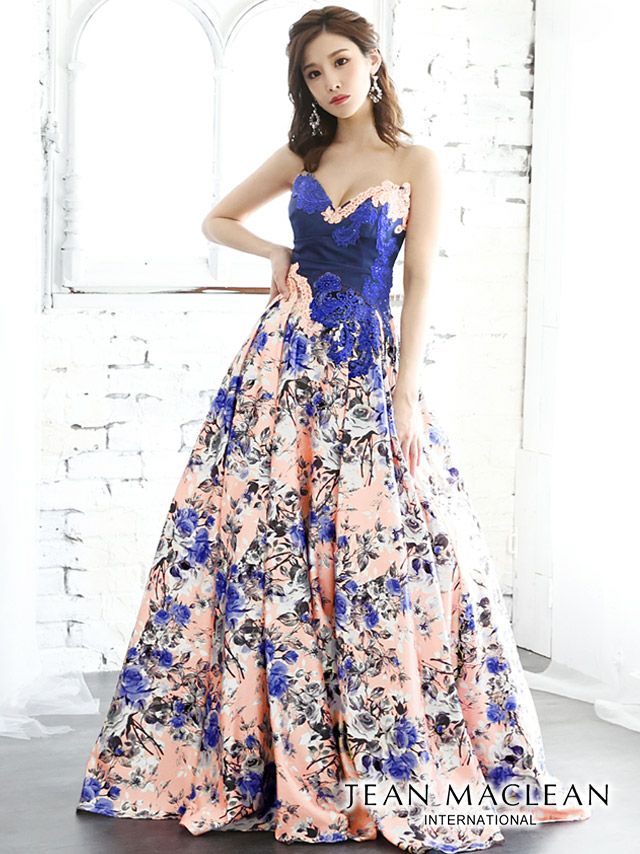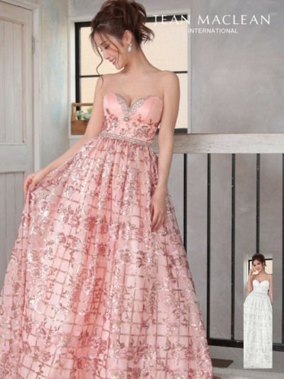 タイトのロングドレスと違い、ウエストより下がフレアに広がったエレガントなデザインのロングドレスです。