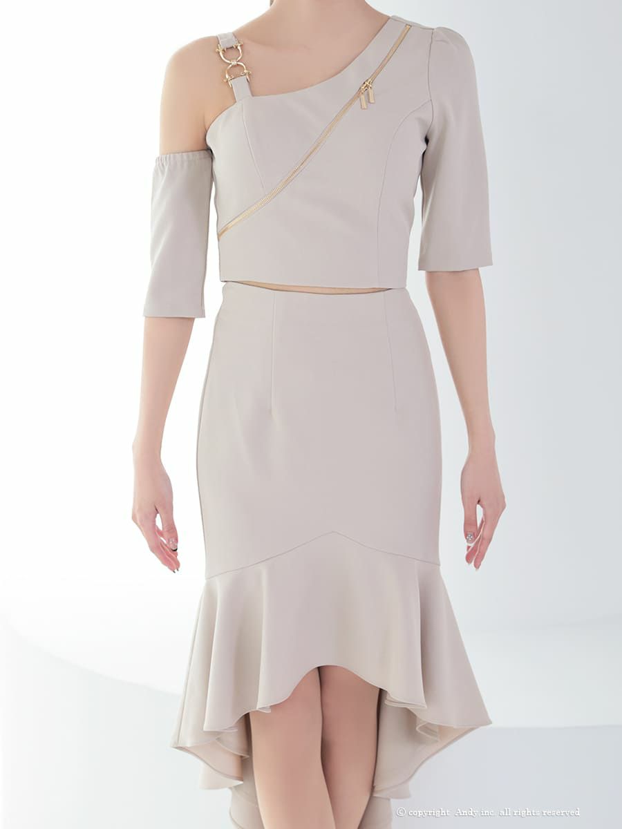 フロントはミニ丈(前ミニ)、バックにかけてはロング丈になっている