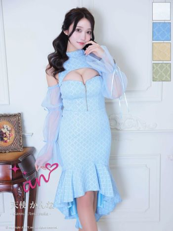 キャバドレス ロングテールドレス an アン カットデザイン ジップデザイン マーメイド チュールスリーブ リボン ホルターネック