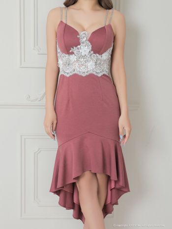 キャバドレス an アン キャミソール レース切替立体 フラワー マーメイドロングテールドレス