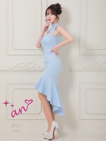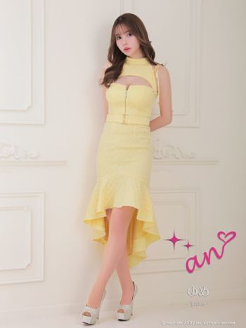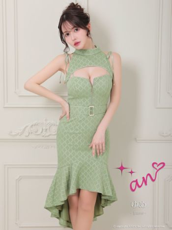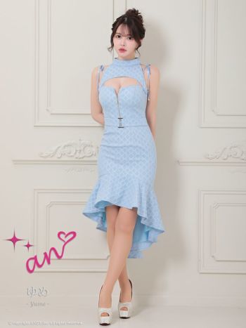 キャバドレス ロングテールドレス an アン ハイネック マーメイド ノースリーブ ジップデザイン ベルト
