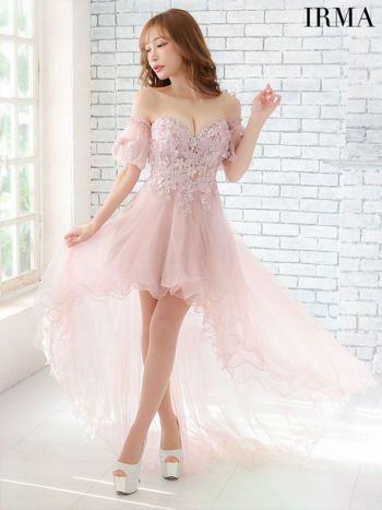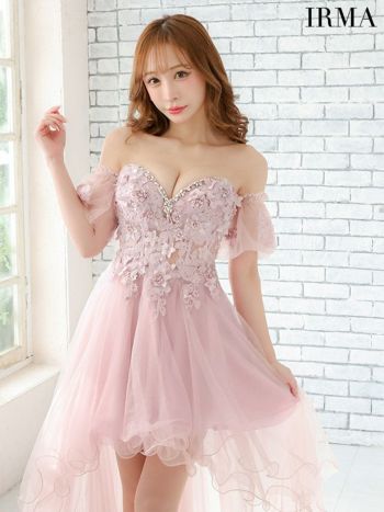 イベントにぴったりなロングテールデザイン♪ 【IRMA/イルマ】バストビジュー フラワー オフショルダー バースデー ロングテールドレス(41567)