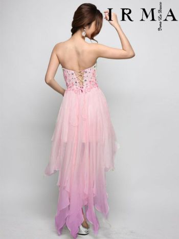 ヒラヒラの生地をたくさん重ねてロングテールのデザインにしたドレス。