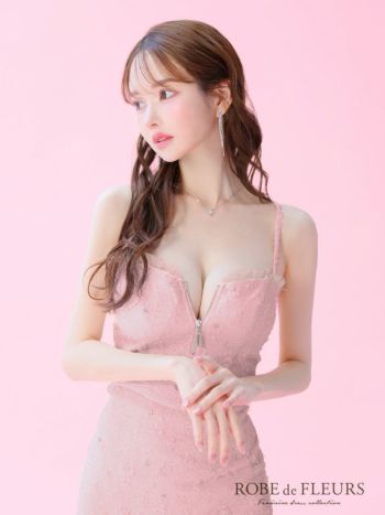 キャバドレス ROBEdeFLEURS ローブドフルール ジャガード チュール キャミソール ジップデザイン セットアップ マーメイドロングドレス