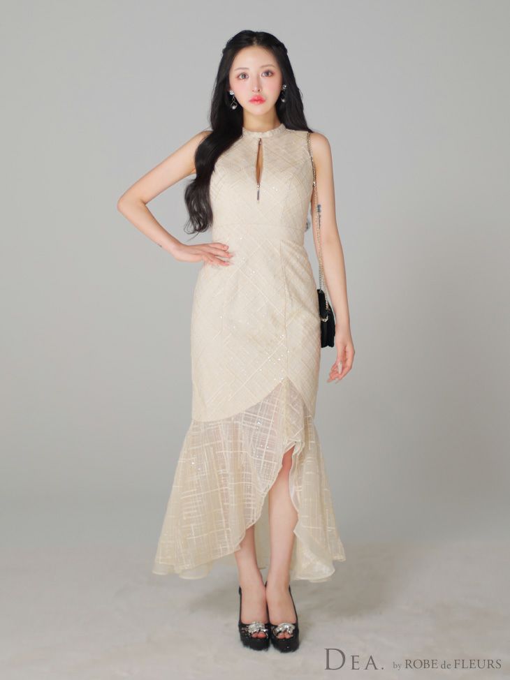 他の画像を見る Lあり!同伴にもおすすめ♪ 【DEA.by ROBE de FLEURS/ディア】シンプル ワンピース ジップデザイン フリルマーメイド チェック柄 スパンコール付き刺繍レース ノースリーブ フレアロングドレス(DE3557) ¥ 32,780 税込 詳細を見る お気に入りに登録する