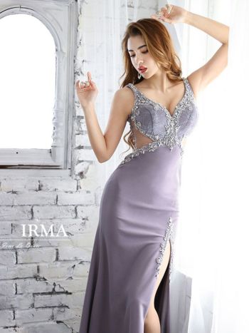 気品に満ちた女性へ導くキャバドレス♪ 【IRMA/イルマ】カットデザイン ワンカラー タイトロングドレス[2color]