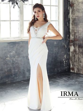 気品に満ちた女性へ導くキャバドレス♪ 【IRMA/イルマ】編み上げウエストカットスリット タイトロングドレス[4color]