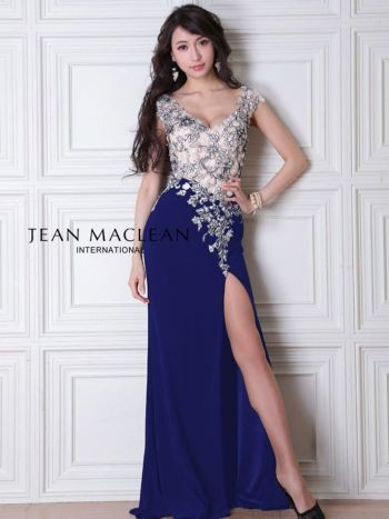 4. 【JEANMACLEAN/ジャンマクレーン】フラワーレース刺繍 タイトロングドレス