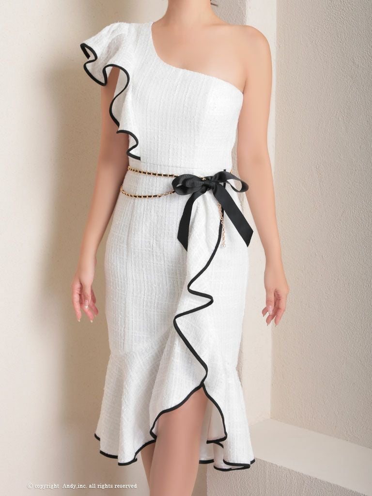 他の画像を見る XSあり!フリルが可愛らしさを引き立てる☆ 【Andy/アンディ】ワンショルダー チェック柄 ツイード フリル ウエストリボン チェーン タイト 膝丈ドレス(anon3036) ¥ 28,600 税込 詳細を見る お気に入りに登録する