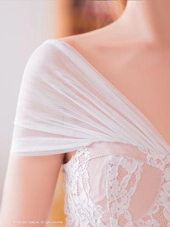 4. 【Andy/アンディ】オフショルダー ワンカラー フラワーレース テールカット リボン シアー マーメイド 膝丈ドレス(anon2861)