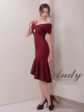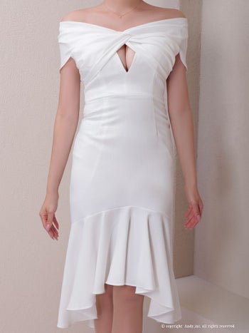 3. 【Andy/アンディ】フリル ワンカラー マーメイド カットアウト テールカット オフショルダー 膝丈ドレス(anon2867)