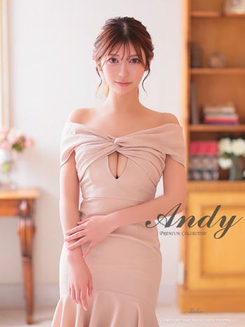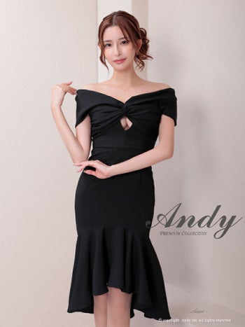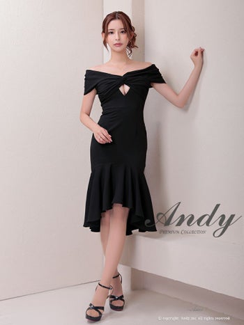 キャバドレス ミディアムドレス Andy アンディ マーメイド ワンカラー フリル カットアウト テールカット オフショル 膝丈ドレス