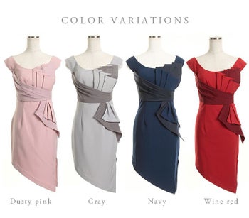 4. 【DEA.by ROBE de FLEURS/ディア】バイカラー アシンメトリー切替 タイトひざ丈ドレス[グレー][1274]