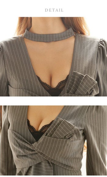スーツ風のかっちりした雰囲気の中に、大胆なバストラインでセクシーさを組み合わせた大人のデザイン!!
