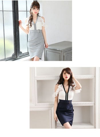 キャバドレス DEA by ROBEdeFLEURS  ディア バイ ローブドフルール de1738 シャツ襟デザイン×オフショルタイトドレス(S/M/L)[送料無料]