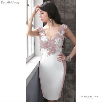 4. 【JEANMACLEAN/ジャンマクレーン】フラワーレース バイカラー タイトひざ丈ドレス[3color]