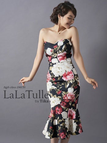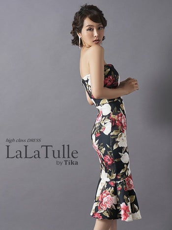 キャバドレス LaLatulle ララチュール フラワープリントタイトミディドレス(ブラック)(S/M)(青田夏奈 着用)【送料無料】