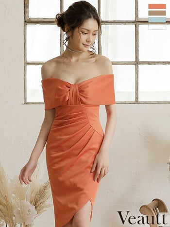 4. 【Veautt/ヴュート】ビッグリボン シンプル オフショルダー膝丈ドレス(VT02228)