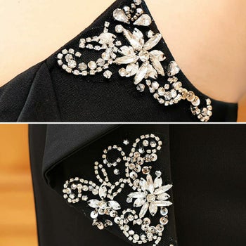 4. 【Veautt/ヴュート】スタイリッシュ バストリボン ビジュー アシンメトリーデザイン タイトひざ丈ドレス (VT02233)