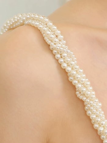 3. 【Veautt/ヴュート】バックスリット パールストラップ付き ワンショルダー ビッグリボン フェミニン 膝丈ドレス (VT082508)