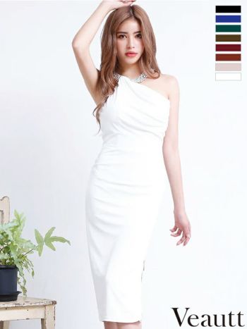 XSあり!大人気商品から新作登場☆ 【Veautt/ヴュート】ジップデザイン スリット タイト シンプル ドレープデザイン ネックビジュー エレガント ミディアム ひざ丈ドレス(VT11232)