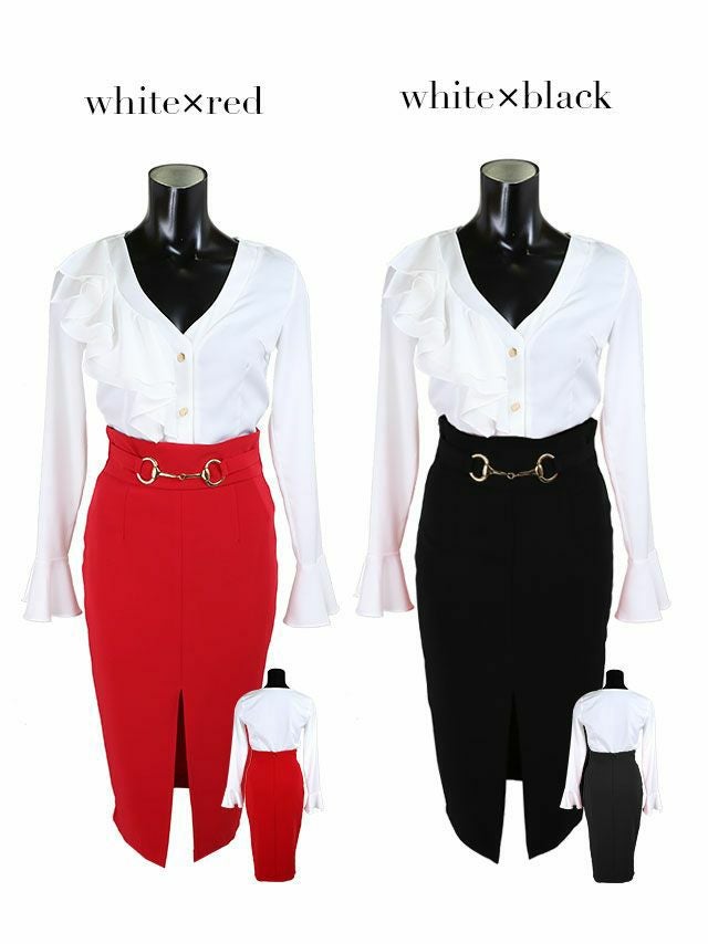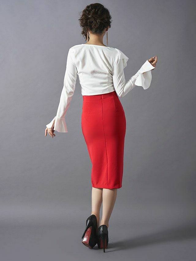 他の画像を見る 高品質な大人綺麗なキャバドレス♪ フリルタイトミディアム丈 セットアップ 袖あり タイトひざ丈ドレス[ホワイト×レッド][Lあり][青田夏奈/キャバドレス着用] 即日発送 ¥ 8,690 税込 在庫切れ 詳細を見る お気に入りに登録する